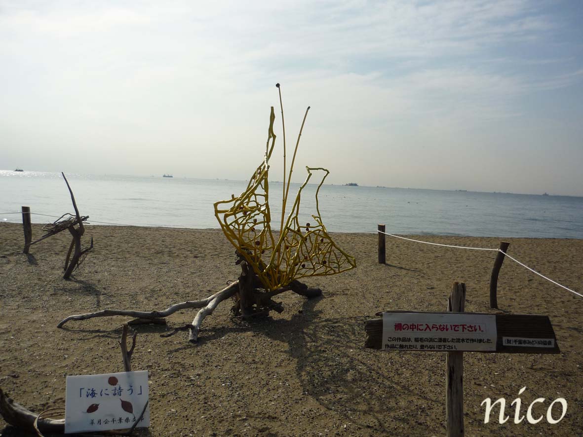 砂浜に流木のオブジェ