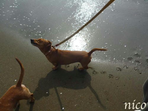 海はそんなに寒くなかったよ、ワンコに引っ張られて