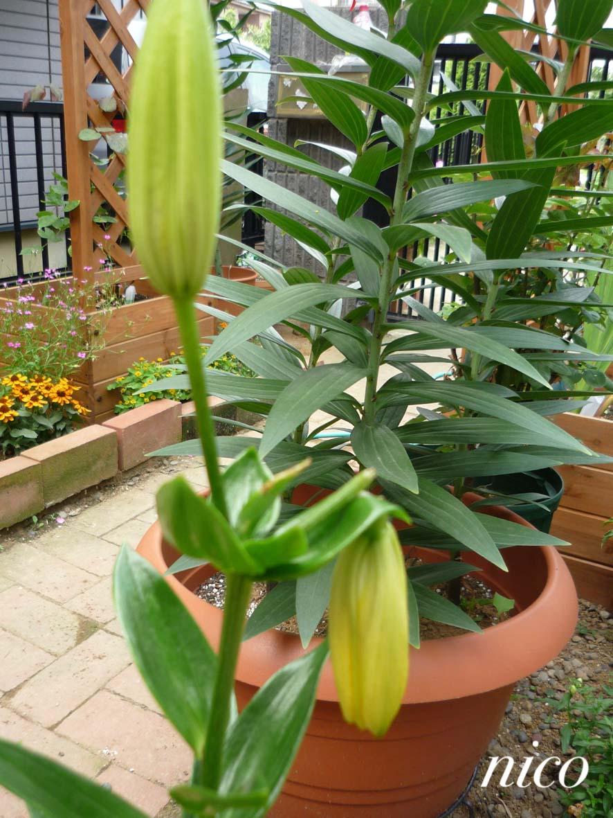 気がついたら ゆりの蕾みひとつ折れていました。