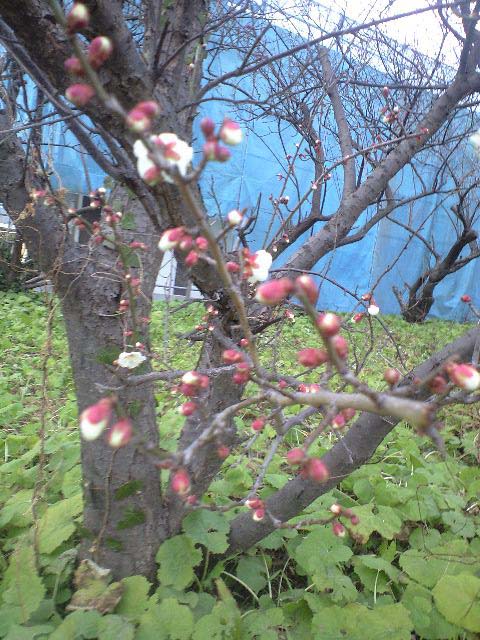 うちのそばの梅です毎年ここは早く咲きますが、今年は寒いのに!