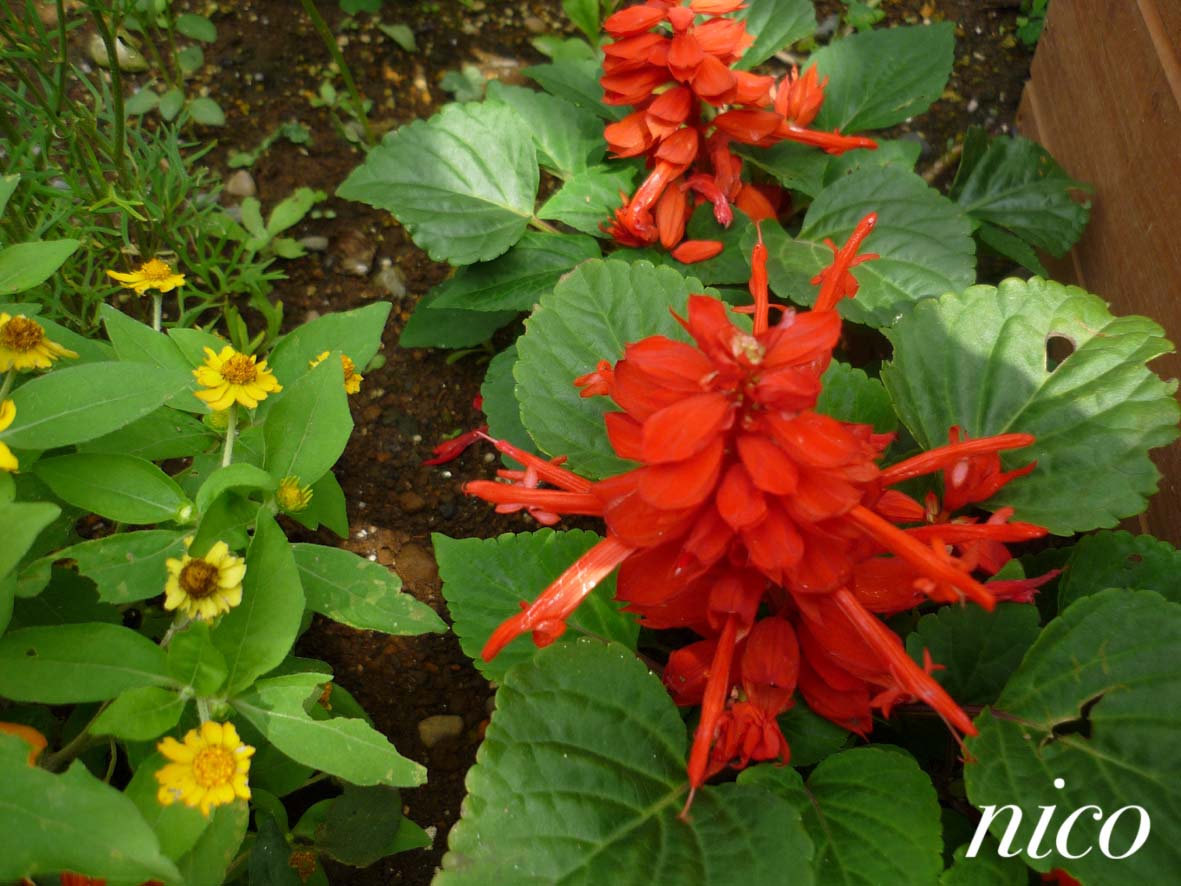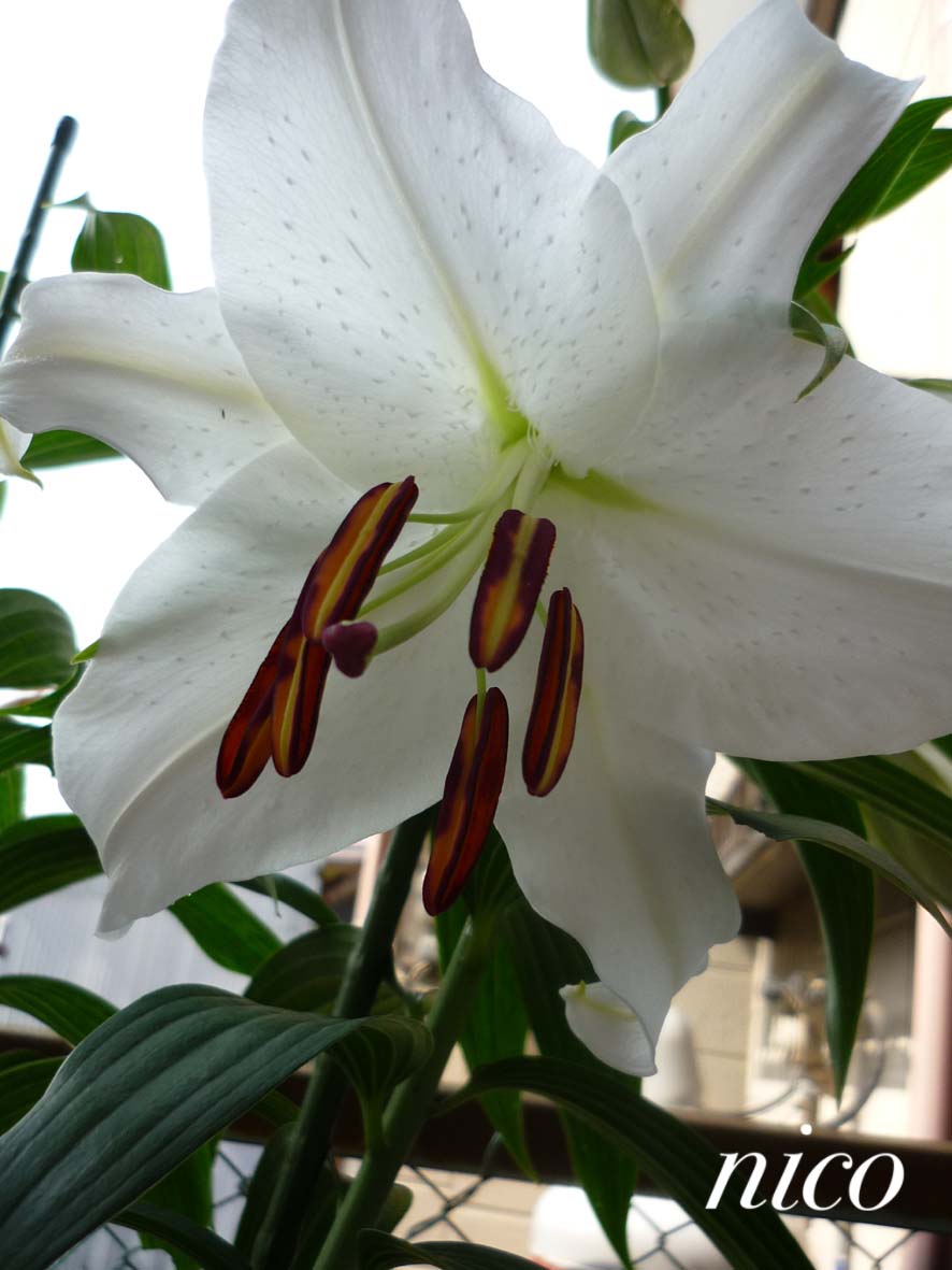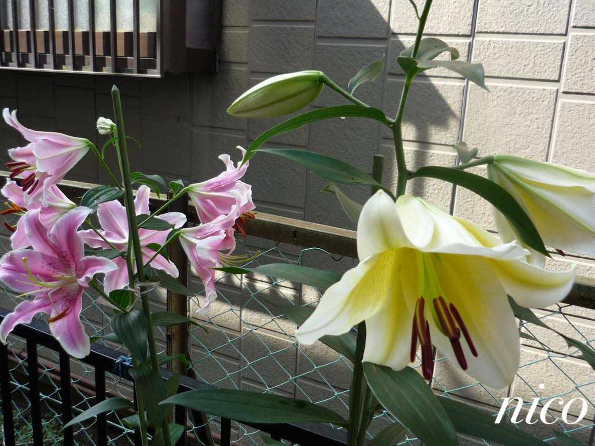 風で何度も倒れたけど無事咲いた、根性コンカドールです。