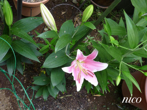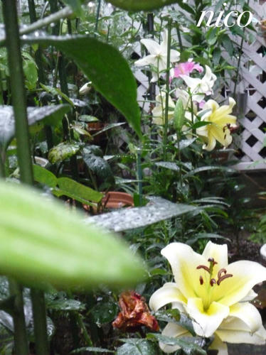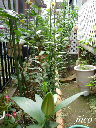 ユリの反対側に緑のカーテン(ゴーヤ)の予定です。