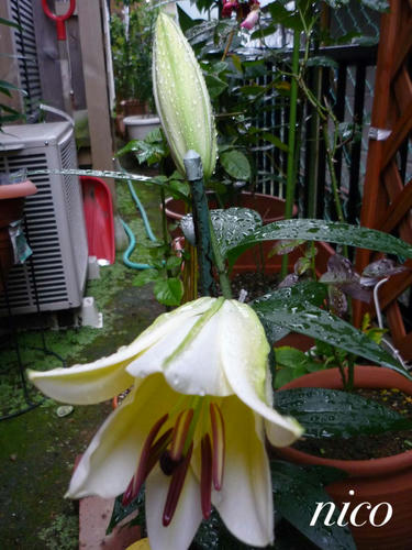 気がついたら ゆりの蕾みひとつ折れていました。