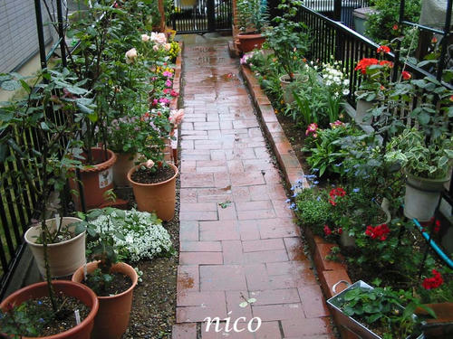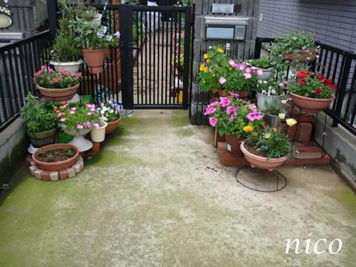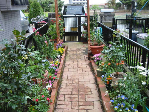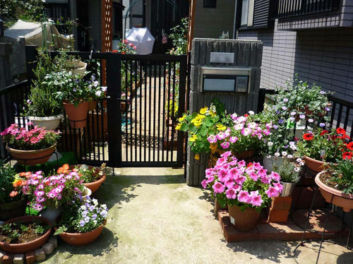 門の前の花