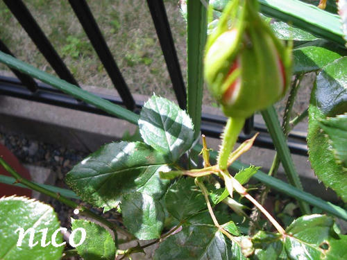 我が家のバラもやっと開花準備始めました。