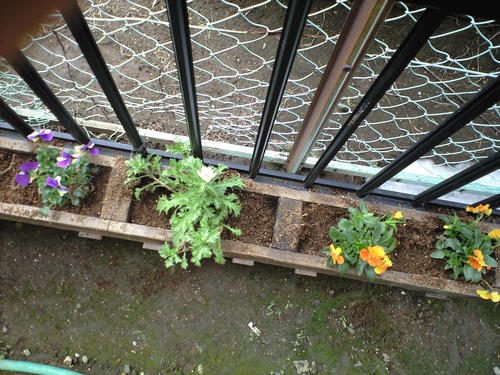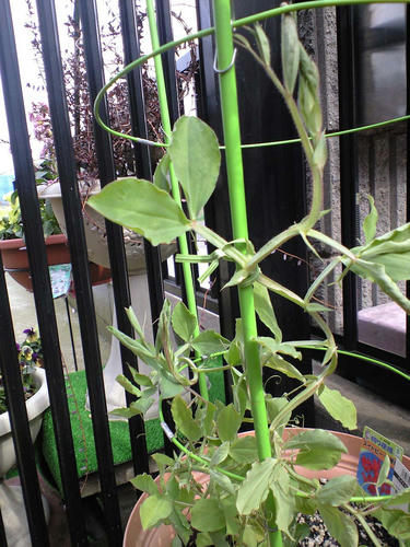 黒い線は花の重みで垂れ下がるので糸で吊ってます