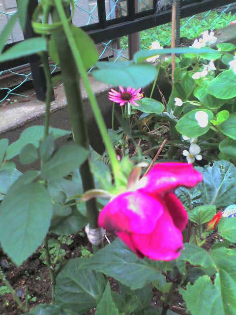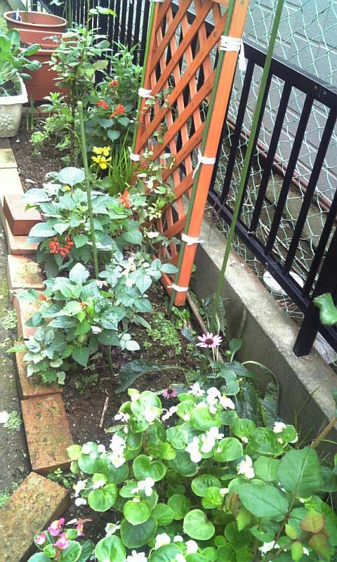 今年は種がこぼれて出てきたベゴニアをここに植えてみました。