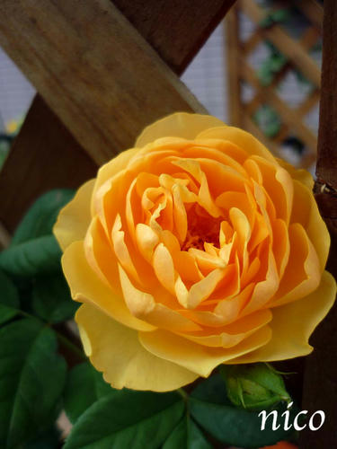 園芸用ポールを格子に組んでバラを絡ませました。