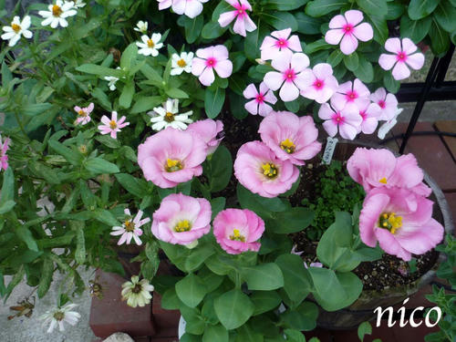 トルコキキョウとニチニチソウ