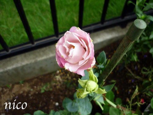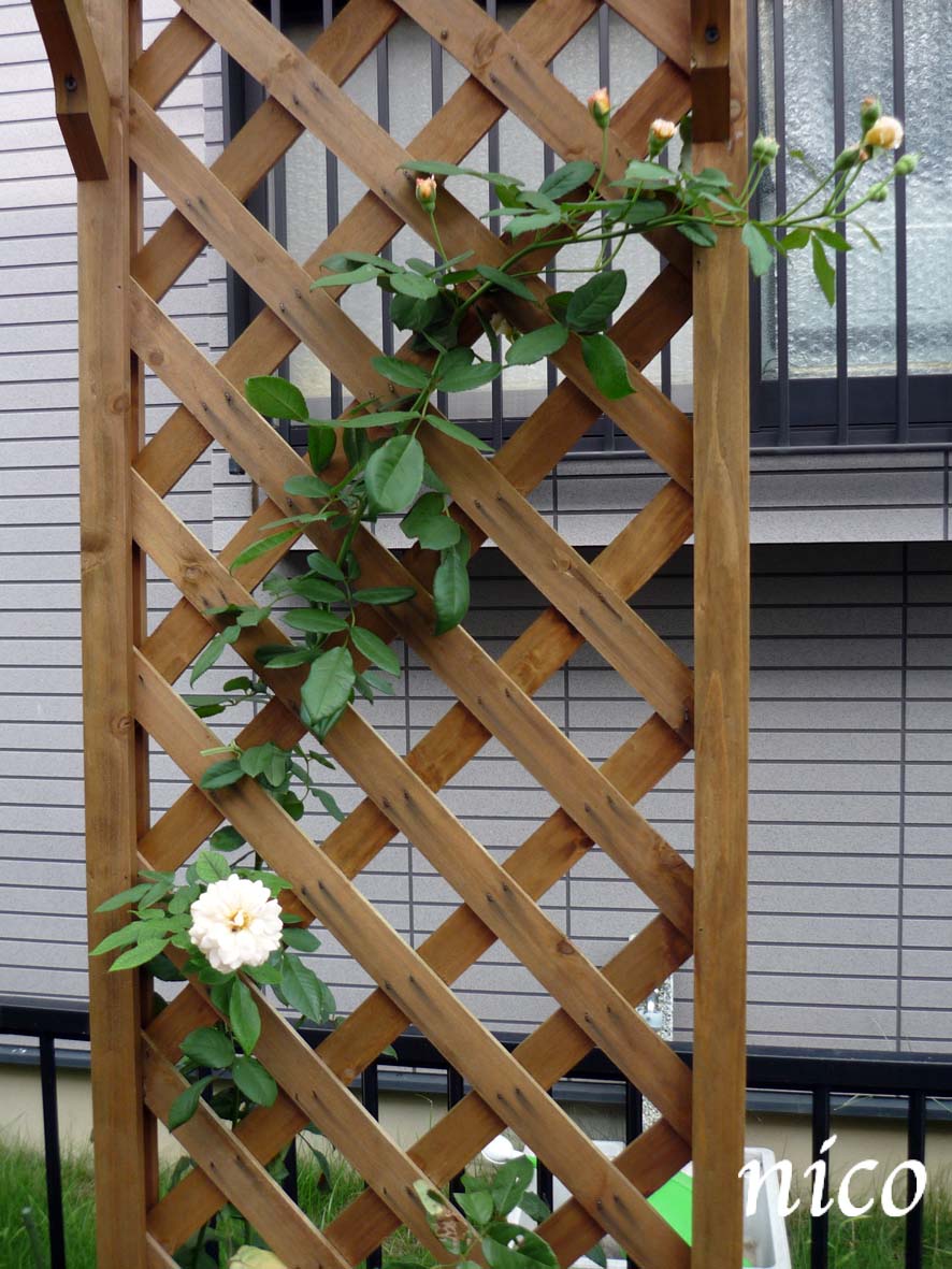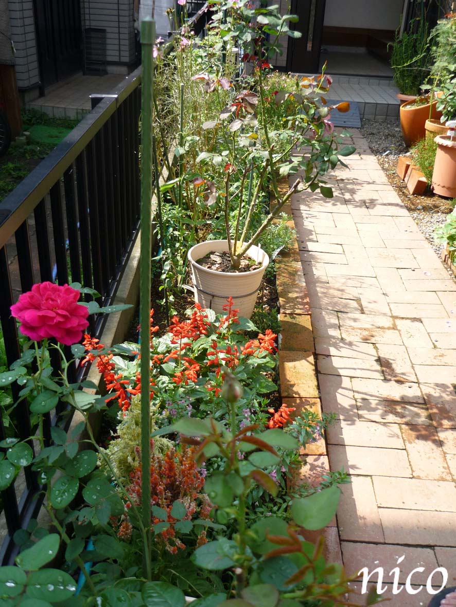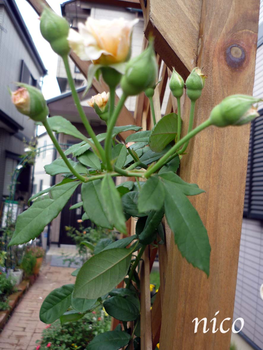花の枯れた葉っぱを取ったり、バラに支柱を立てたりしたまでは