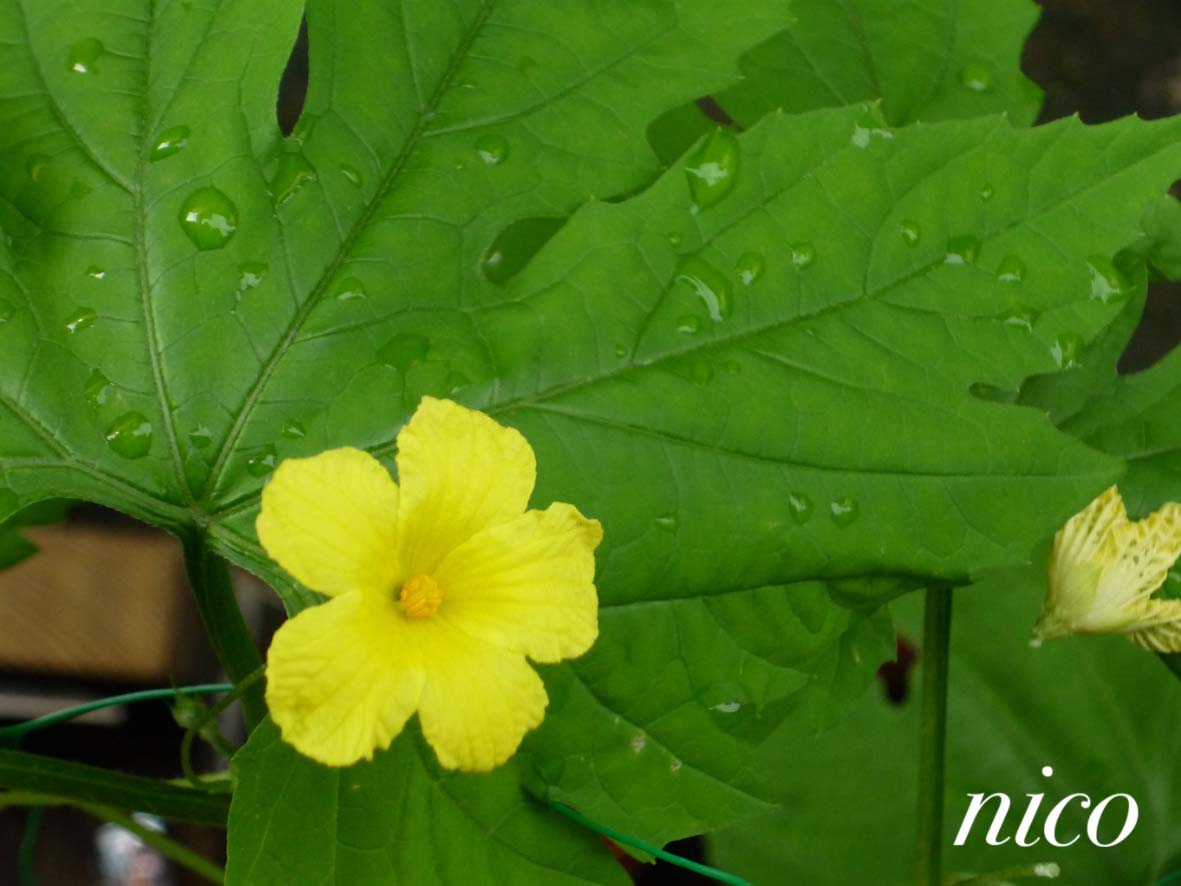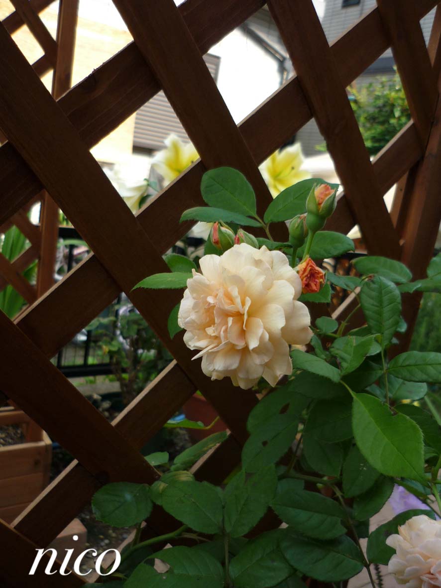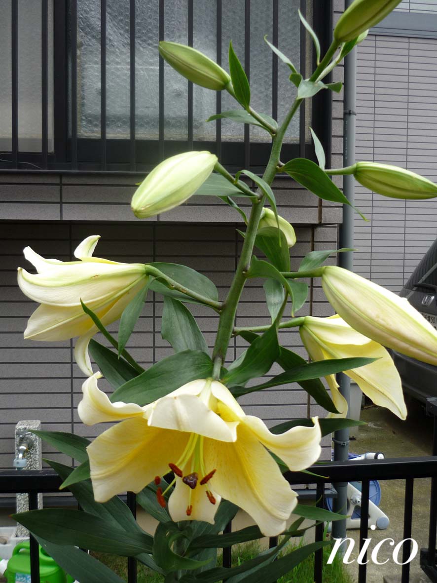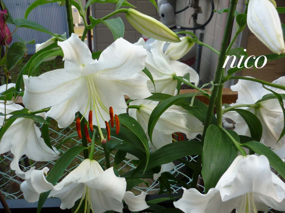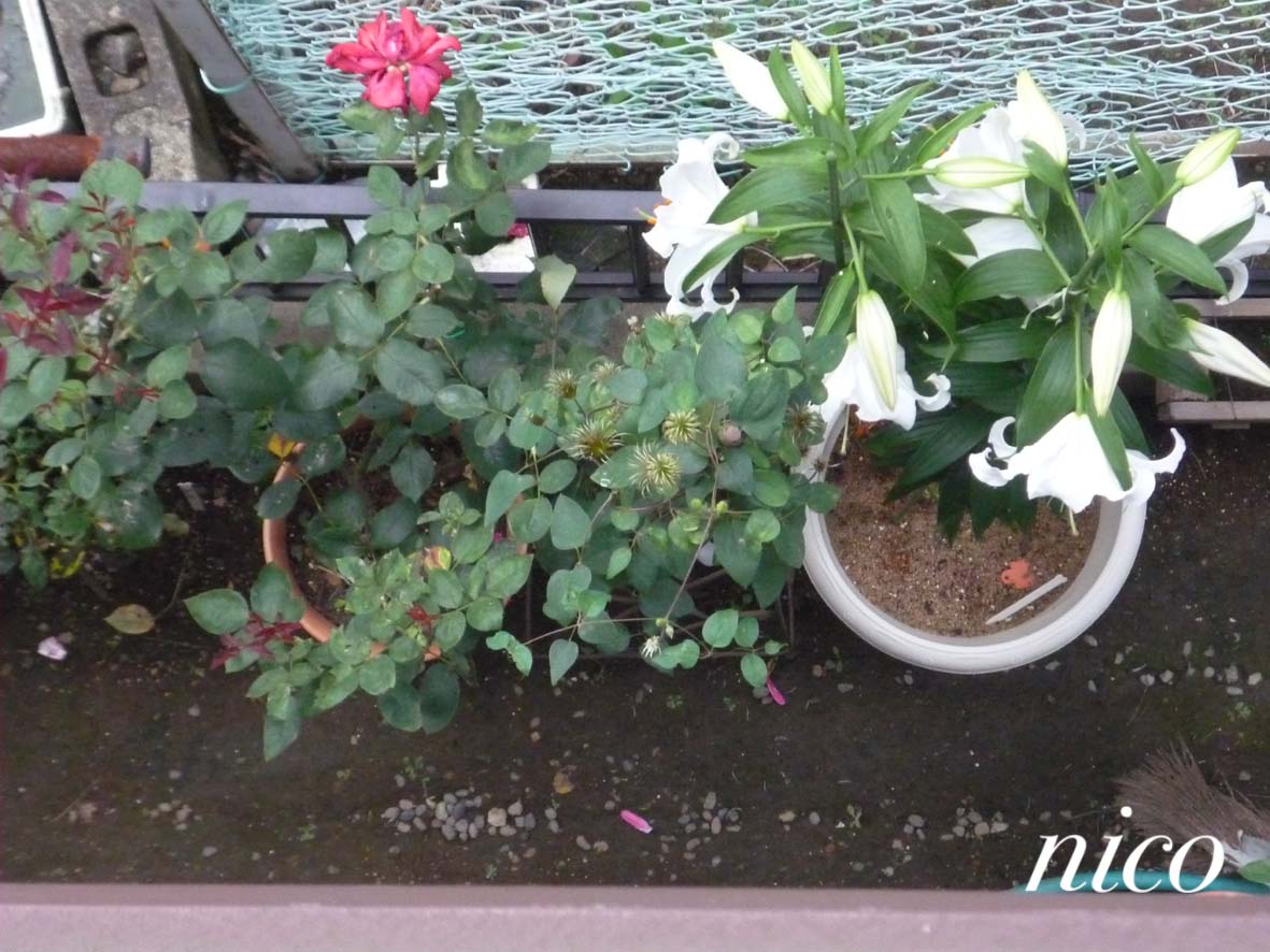 風で何度も倒れたけど無事咲いた、根性コンカドールです。