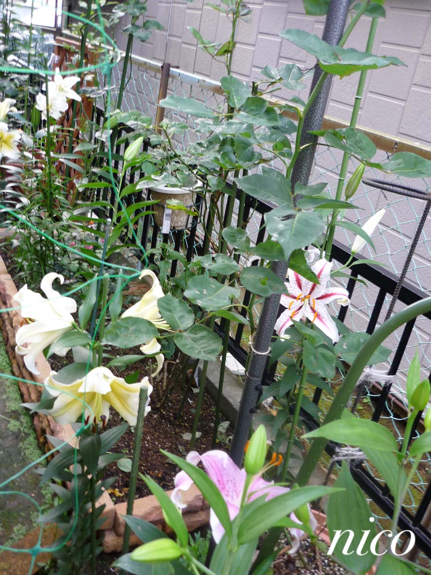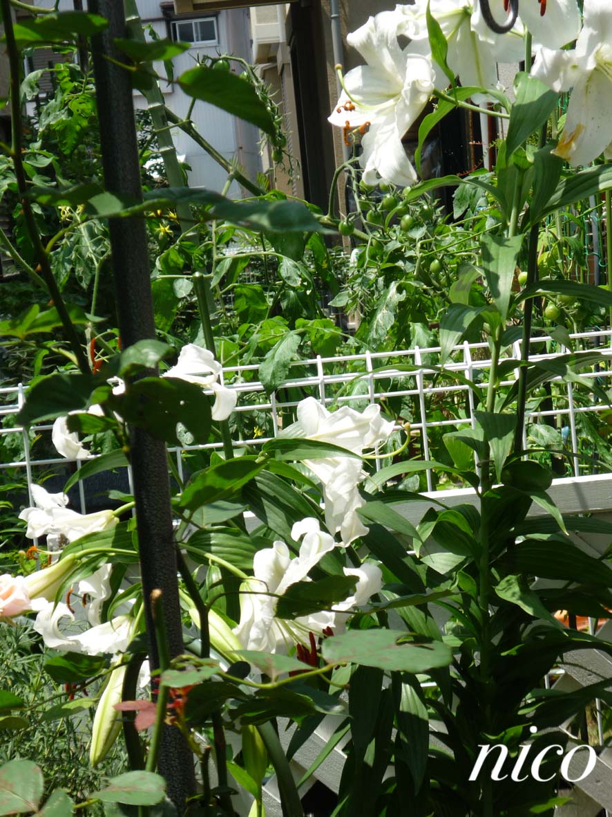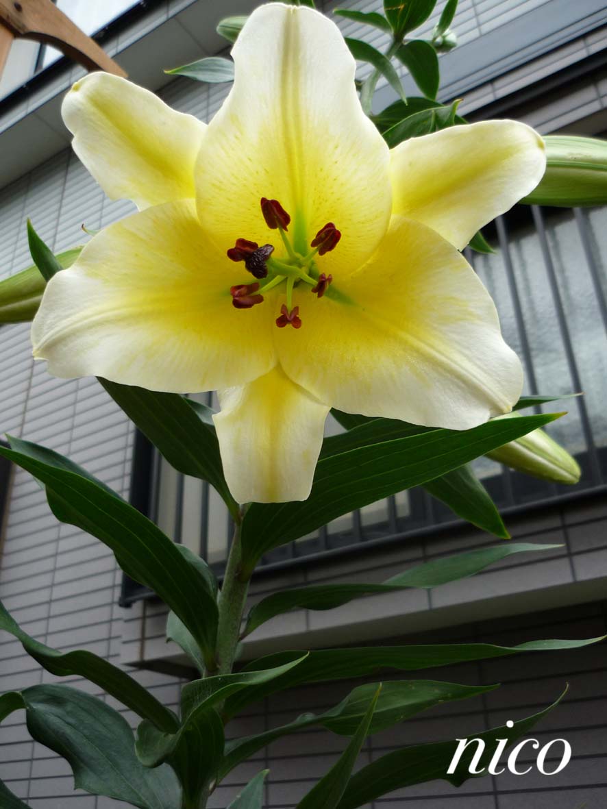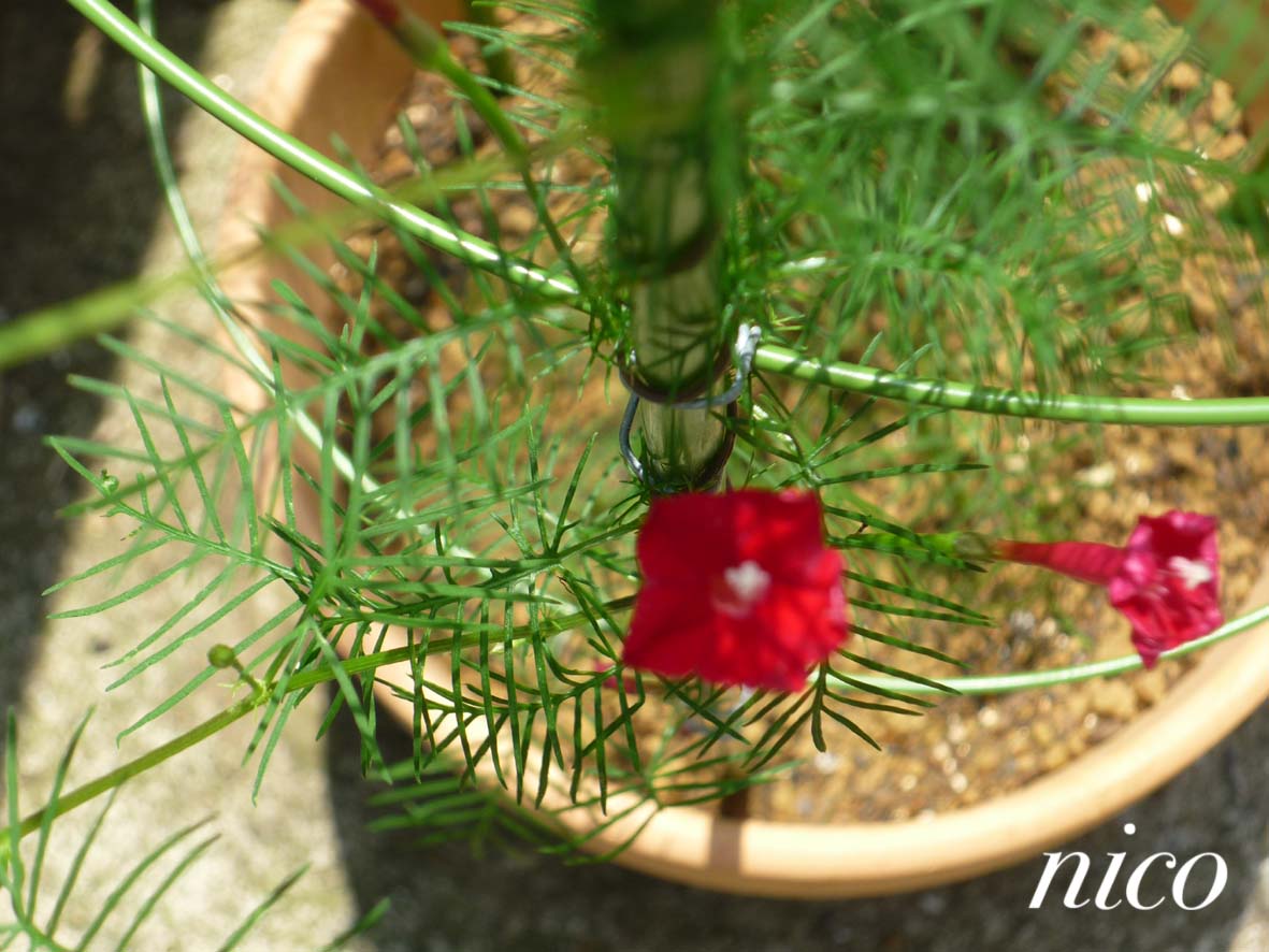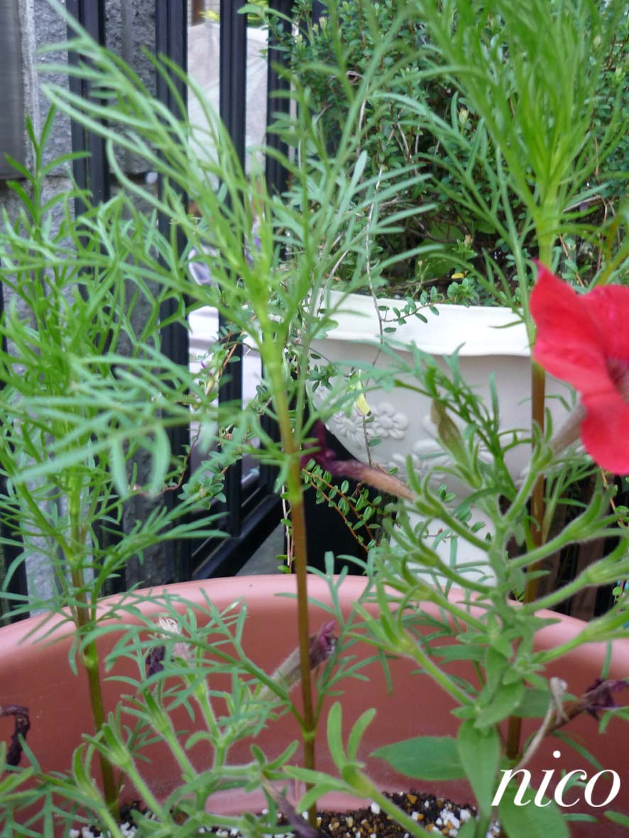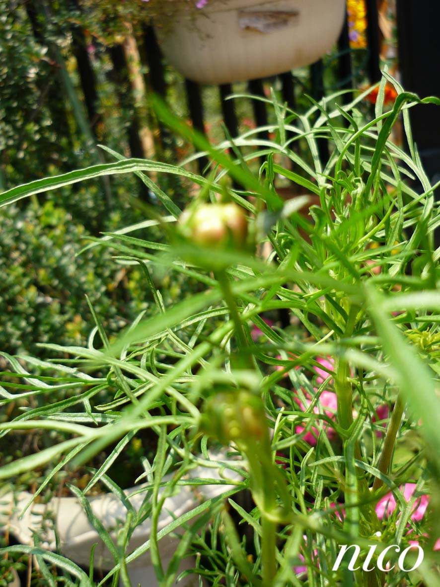 風で何度も倒れたけど無事咲いた、根性コンカドールです。