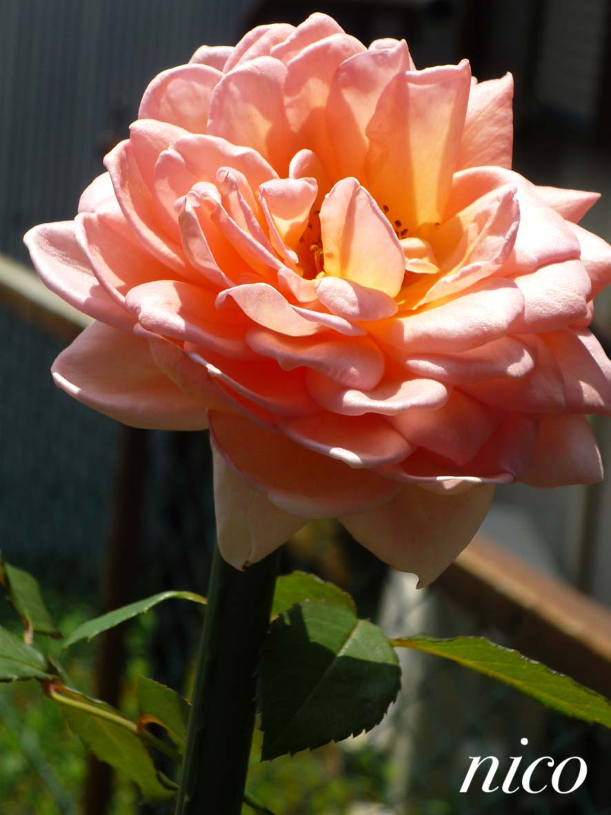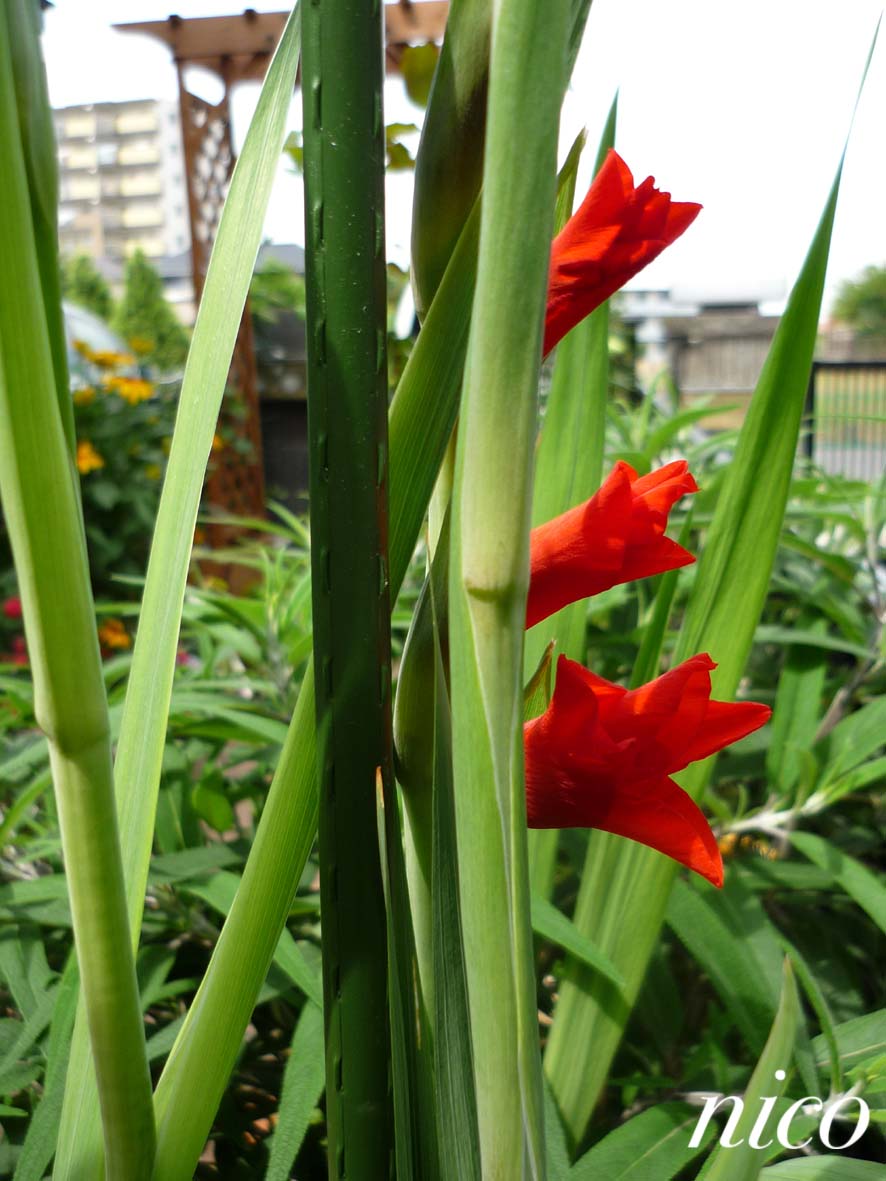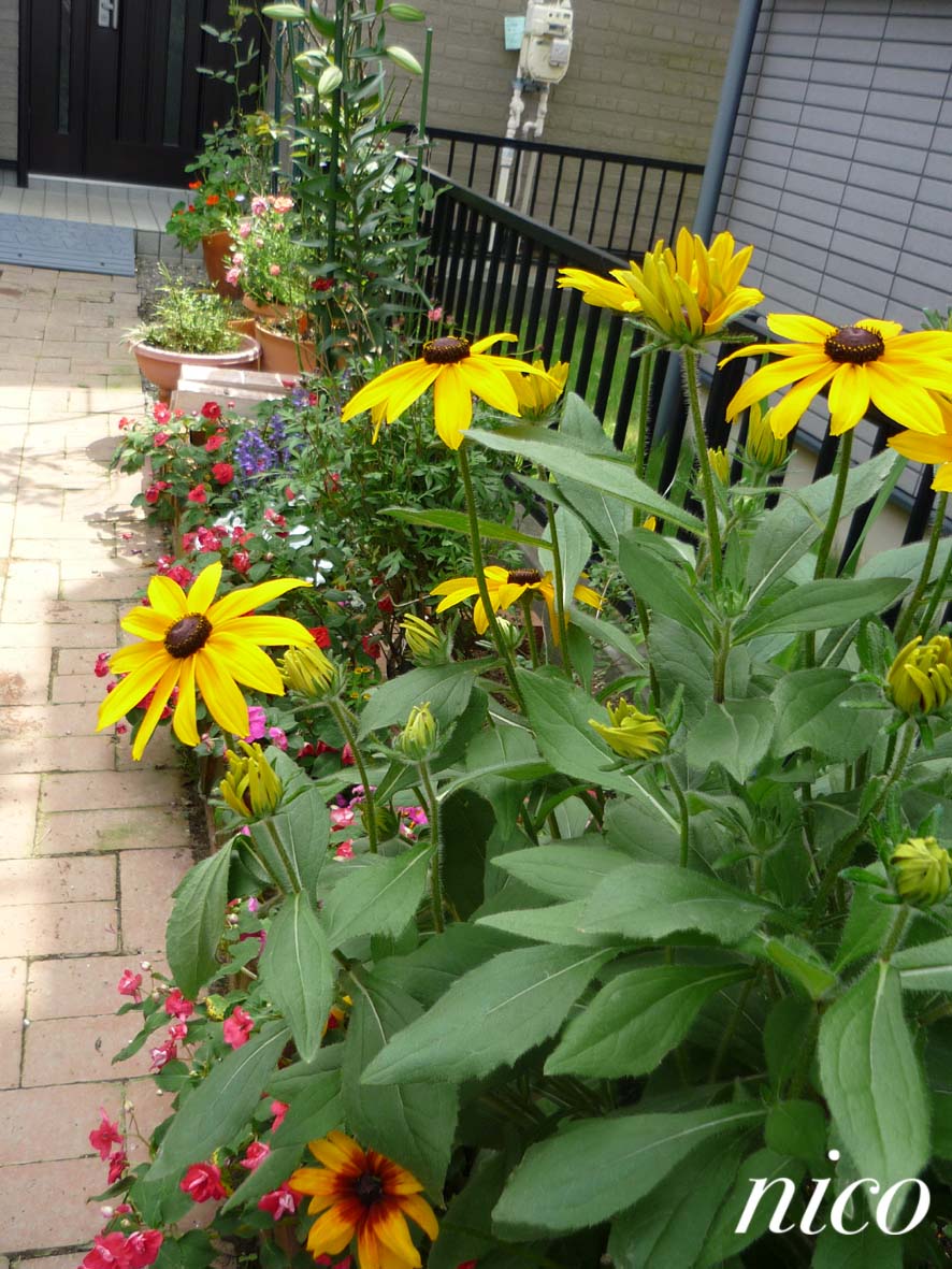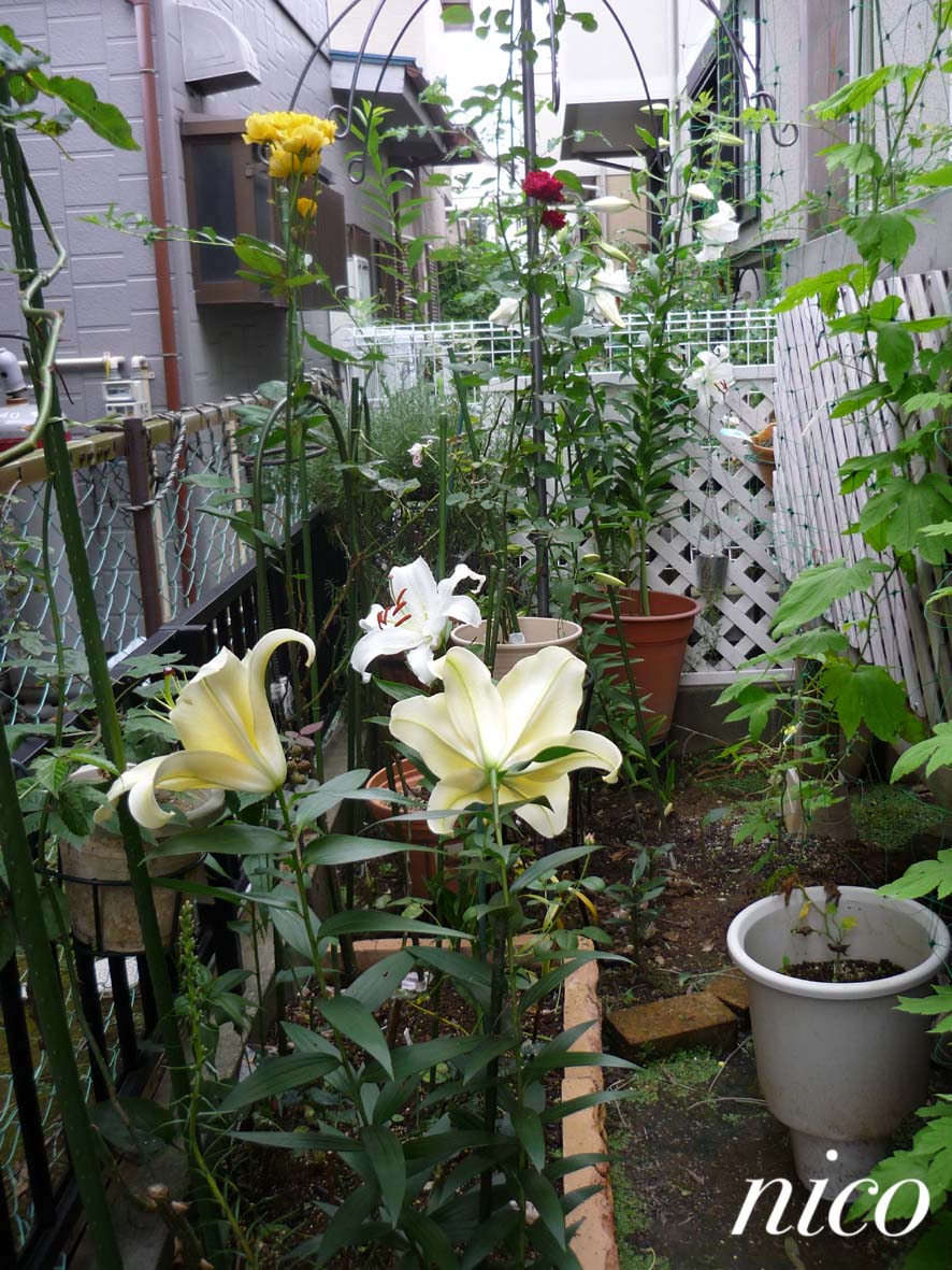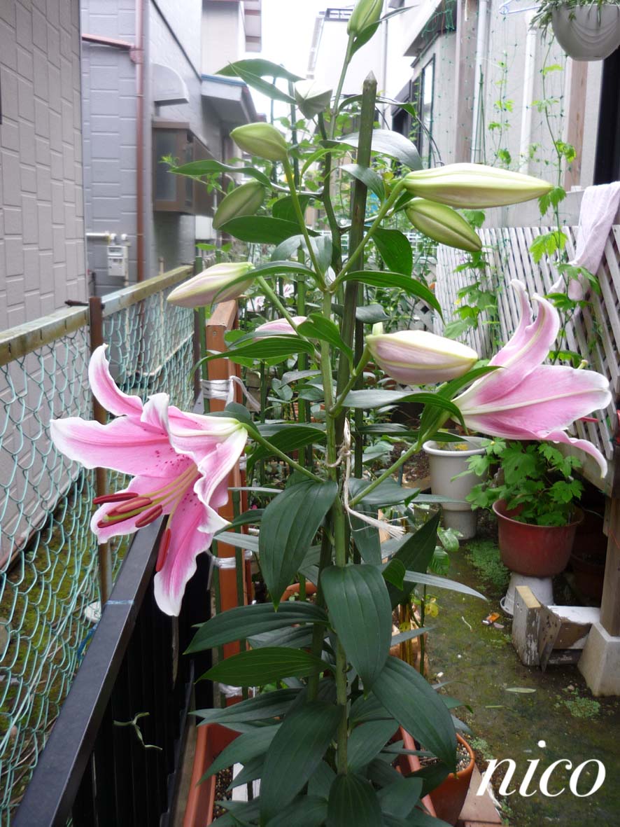 風で何度も倒れたけど無事咲いた、根性コンカドールです。