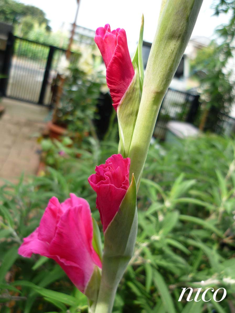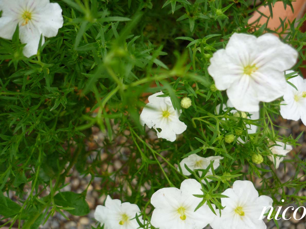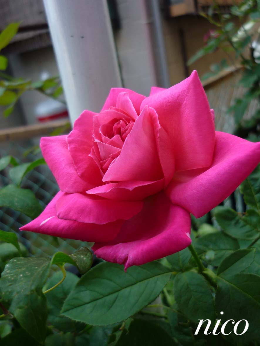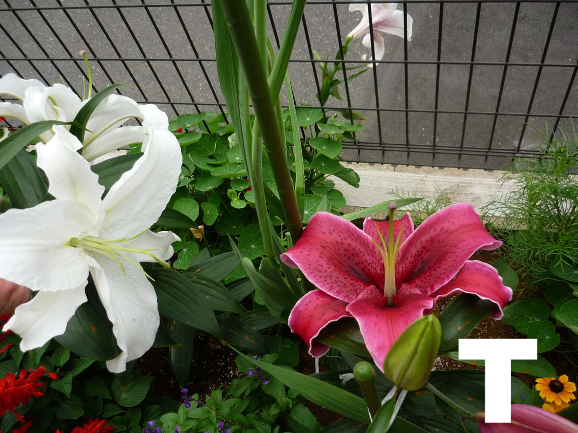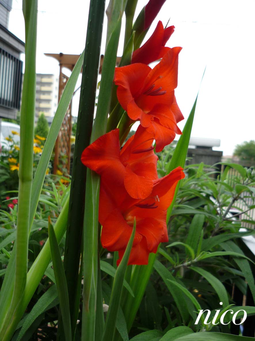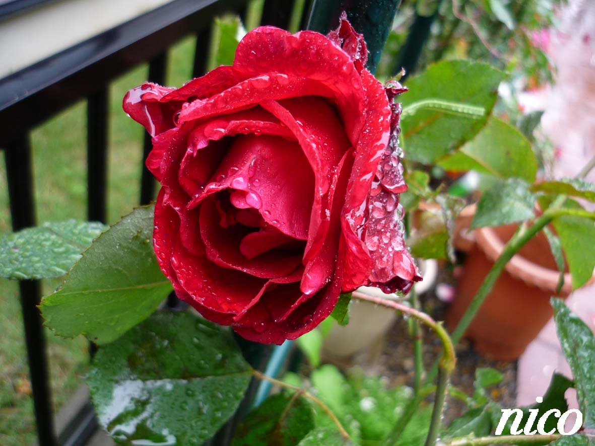 風で何度も倒れたけど無事咲いた、根性コンカドールです。