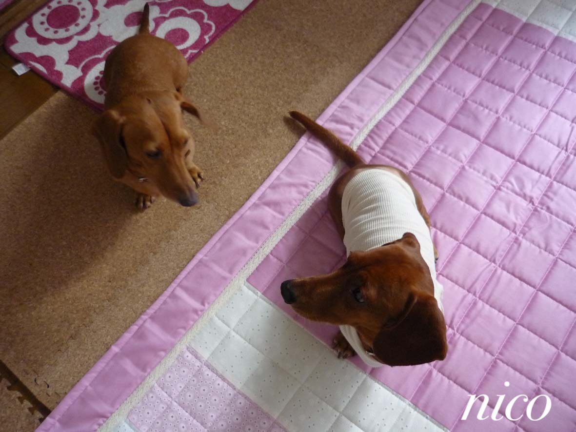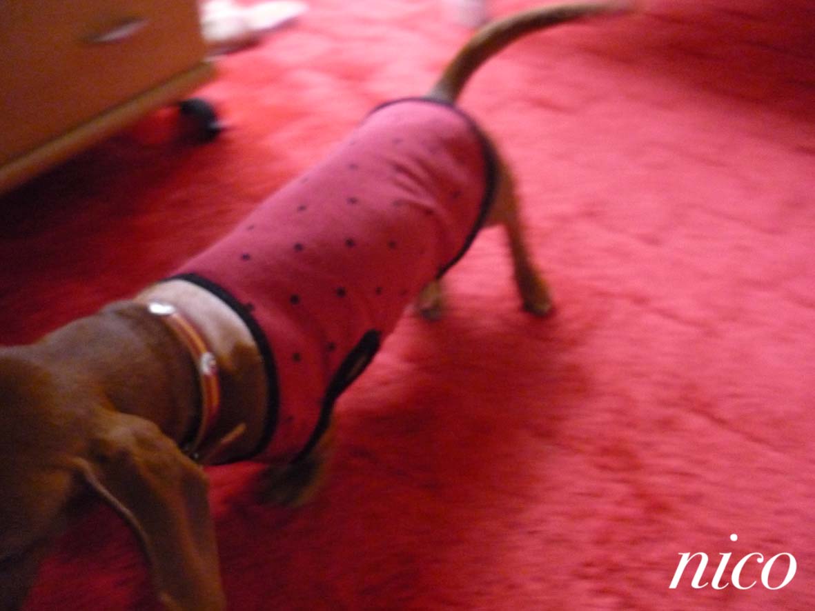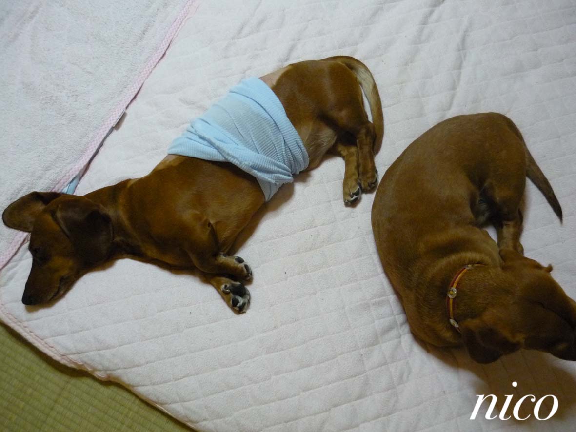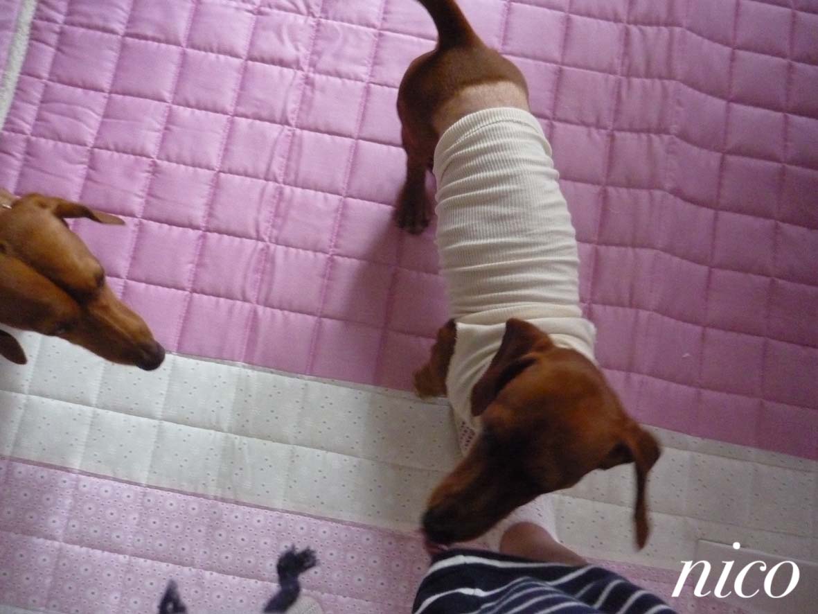 傷口をいじるといけないので、腹巻きの親戚みたいなのを