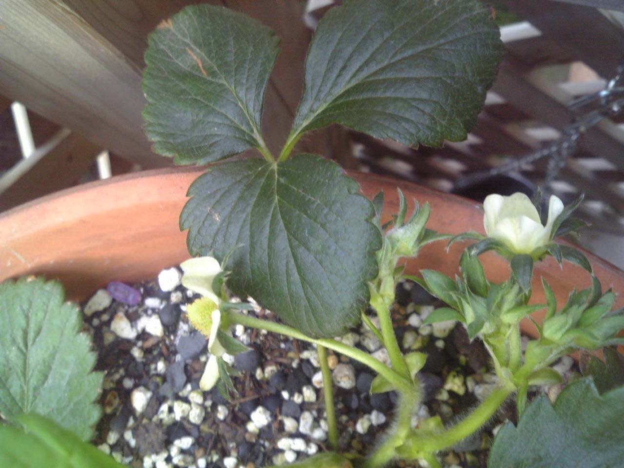 苺の花が咲きました。