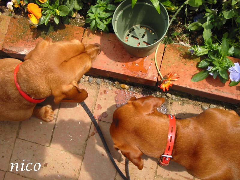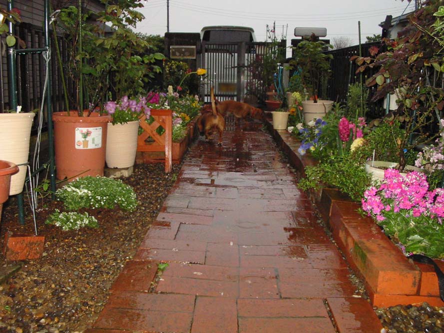 雨の中ウロウロしてるタロウ&ジロウ