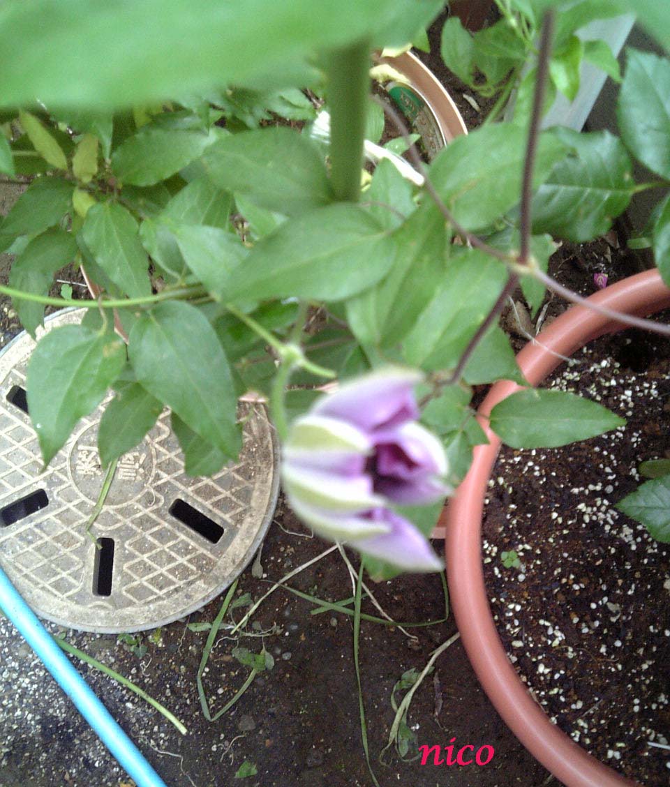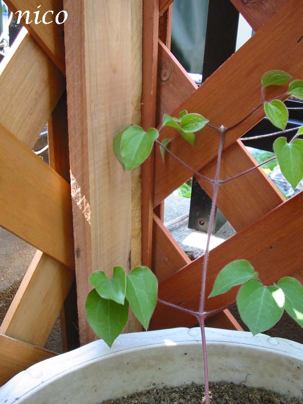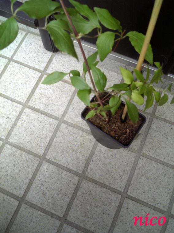 ホームセンターで300円見切り品のクレマチス三本買いました。