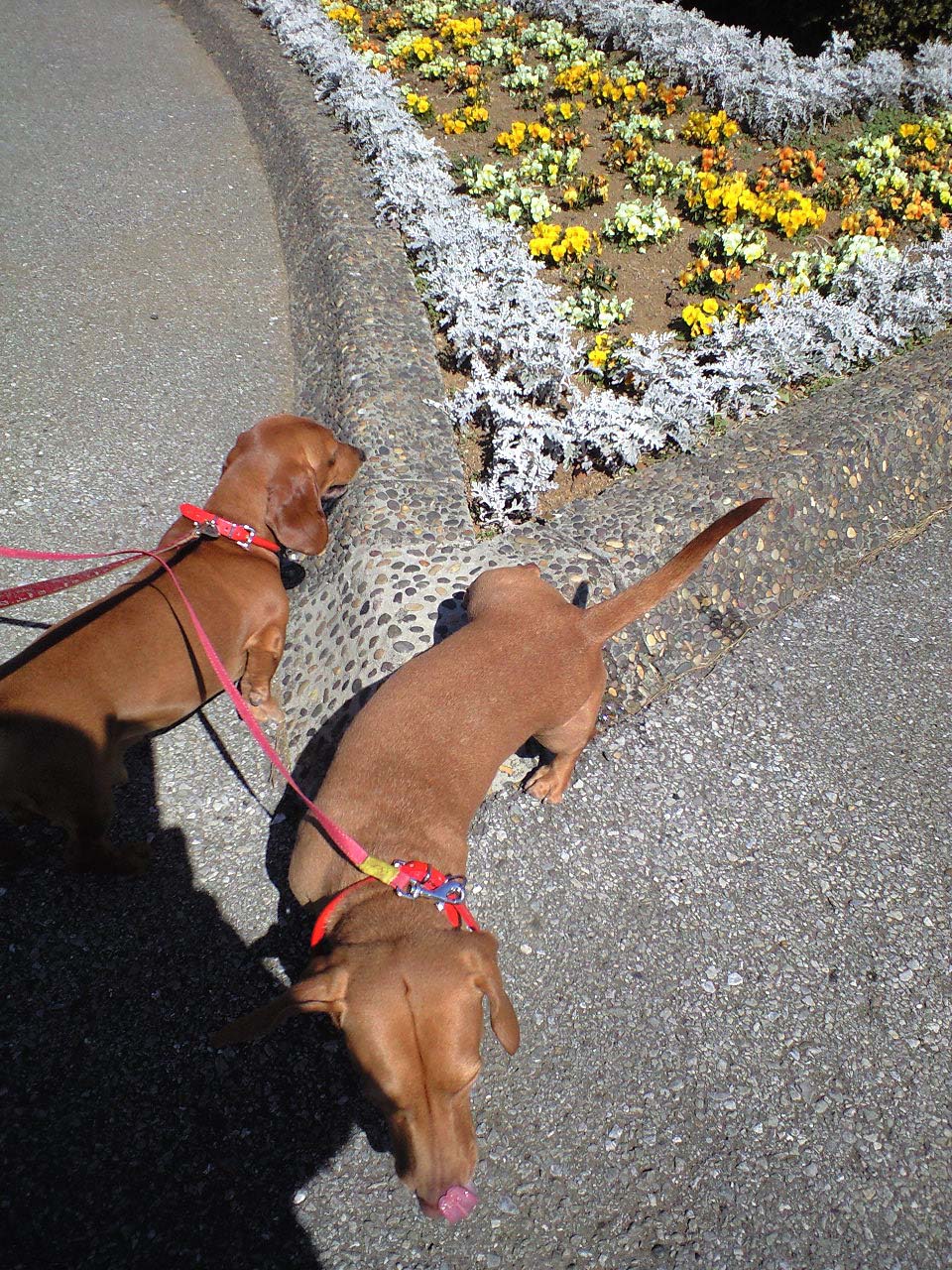 きょうは暖かいのでたろう、じろうとゆっくり散歩してきました。