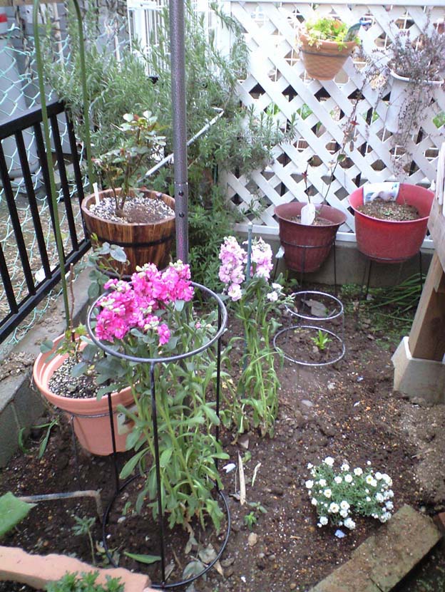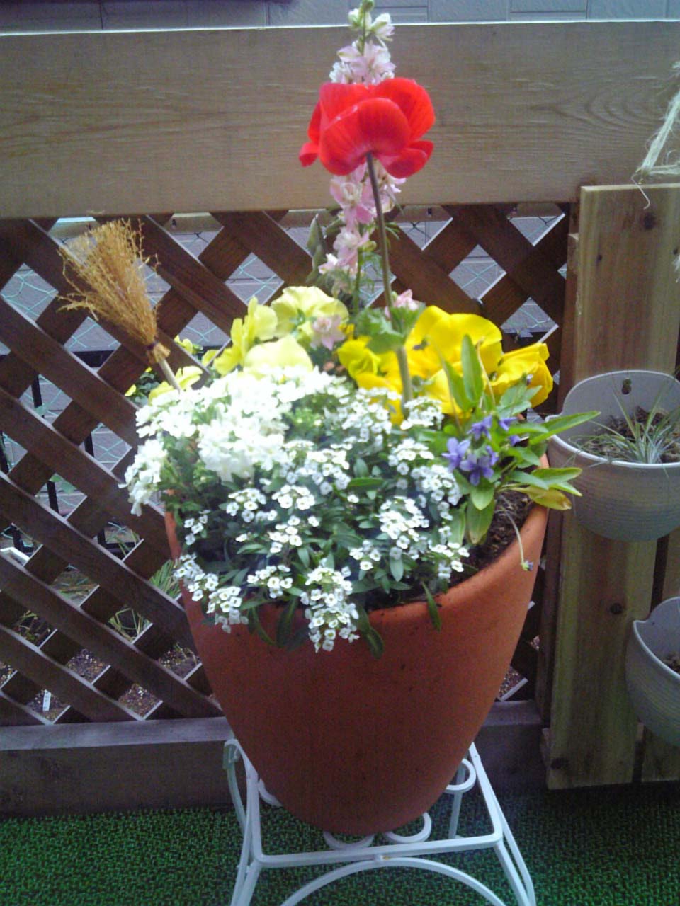 (植木鉢がぎゅうぎゅうで水が回らないので、植え替えまでは可哀想だね。)