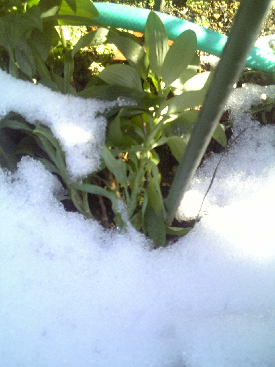 降っています。雪で折れた花、倒れた花を、直しておきたかったんだけど・・・