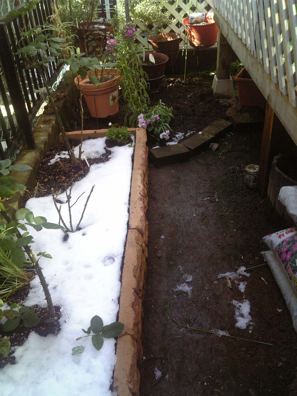 雪で折れた花、倒れた花を、直しておきたかったんだけど・・・