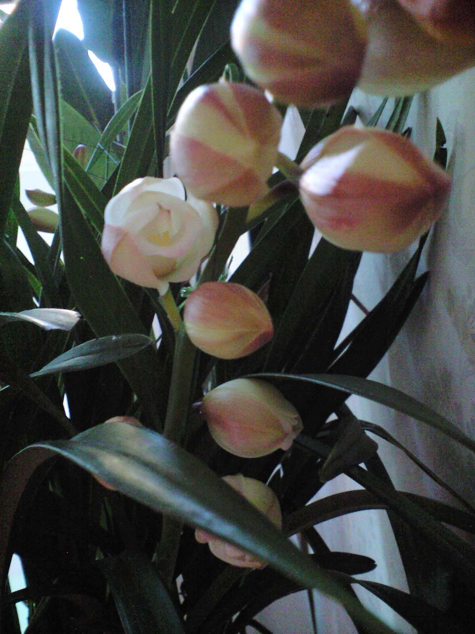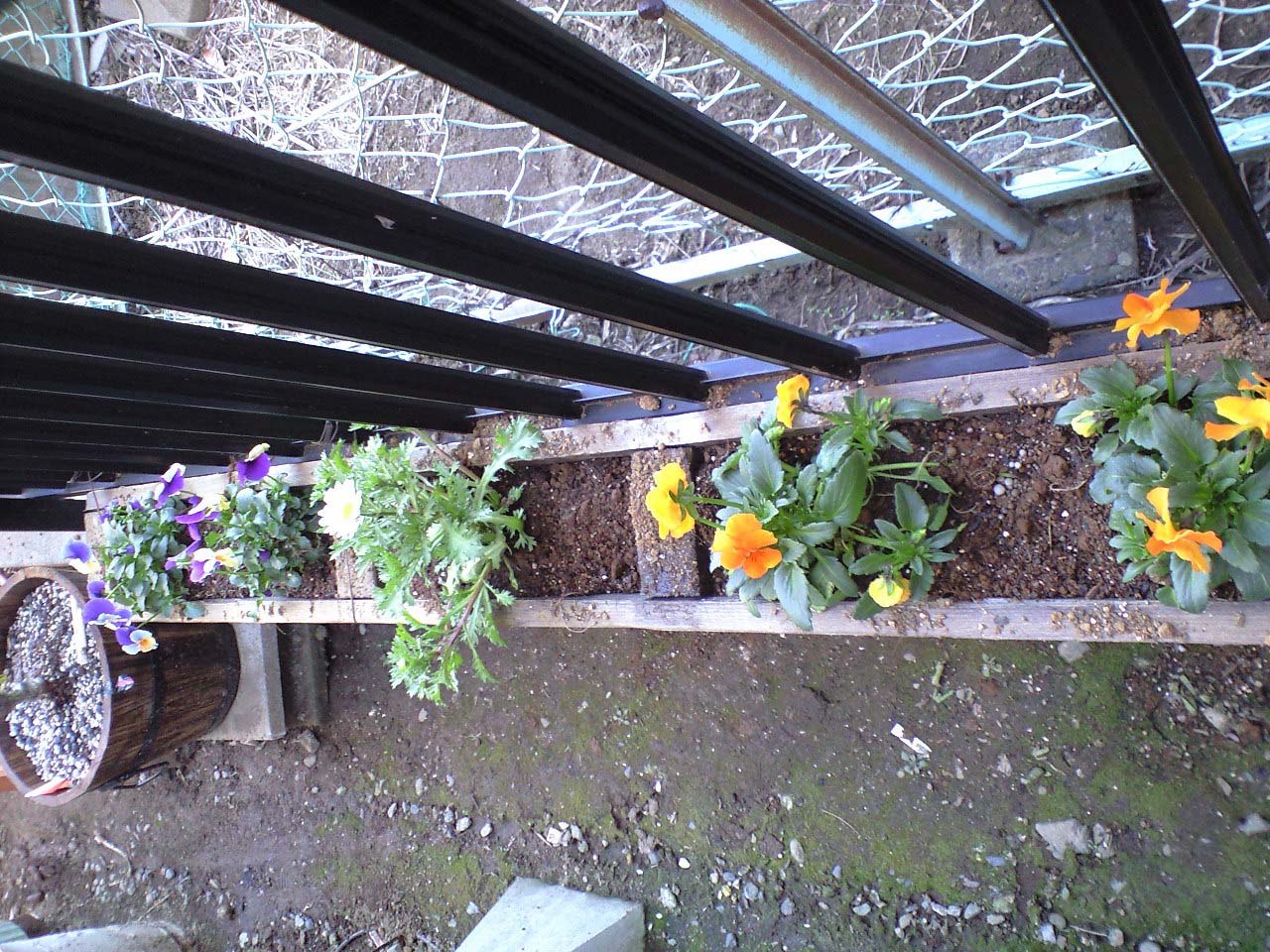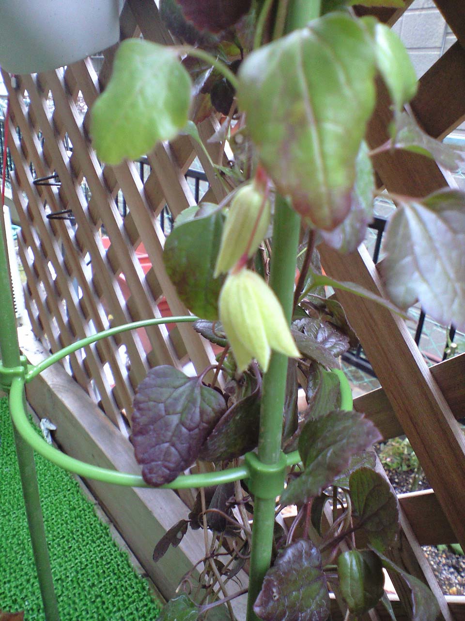 黒い線は花の重みで垂れ下がるので糸で吊ってます