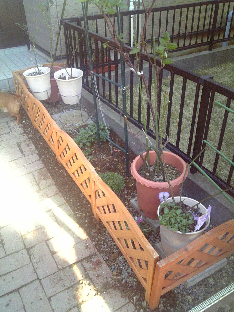 感じます。ホームセンターで処分品のガーデンフェンス三百円の値札が