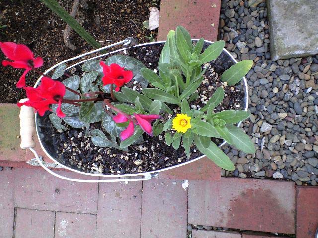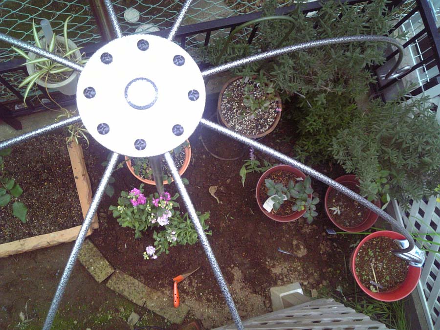 百均で買ったアルミ缶の底に穴を開けて植えました