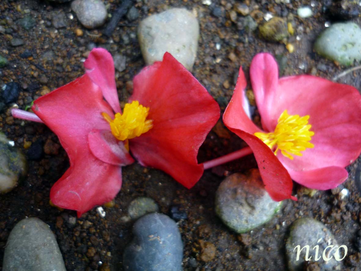 雨で落ちたベコニアの花