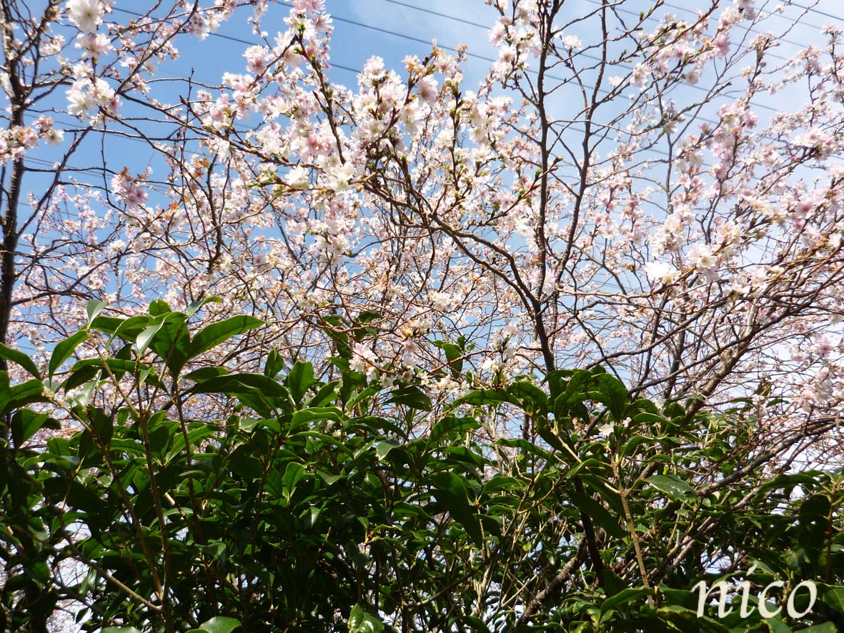 狂い咲きだよ。今年の春に綺麗だねーって見たばっかりだもん。