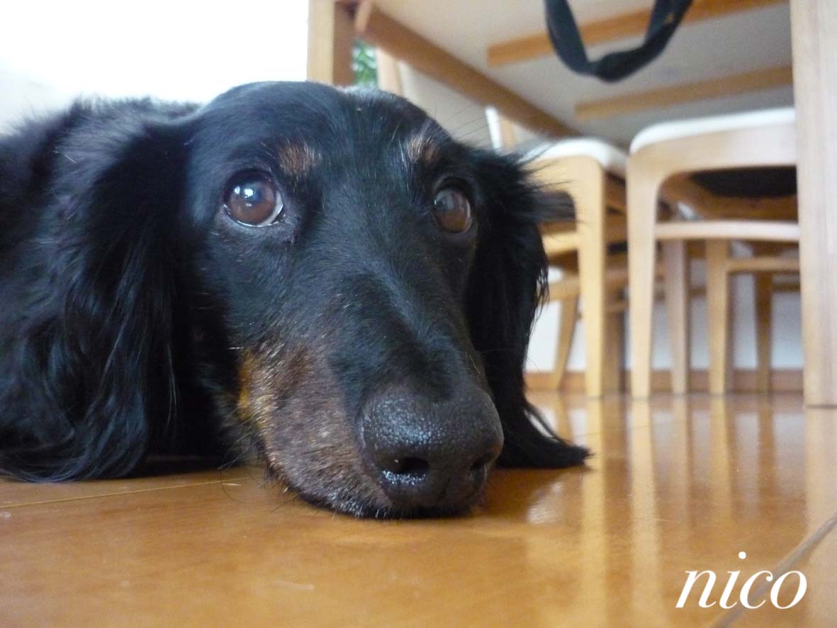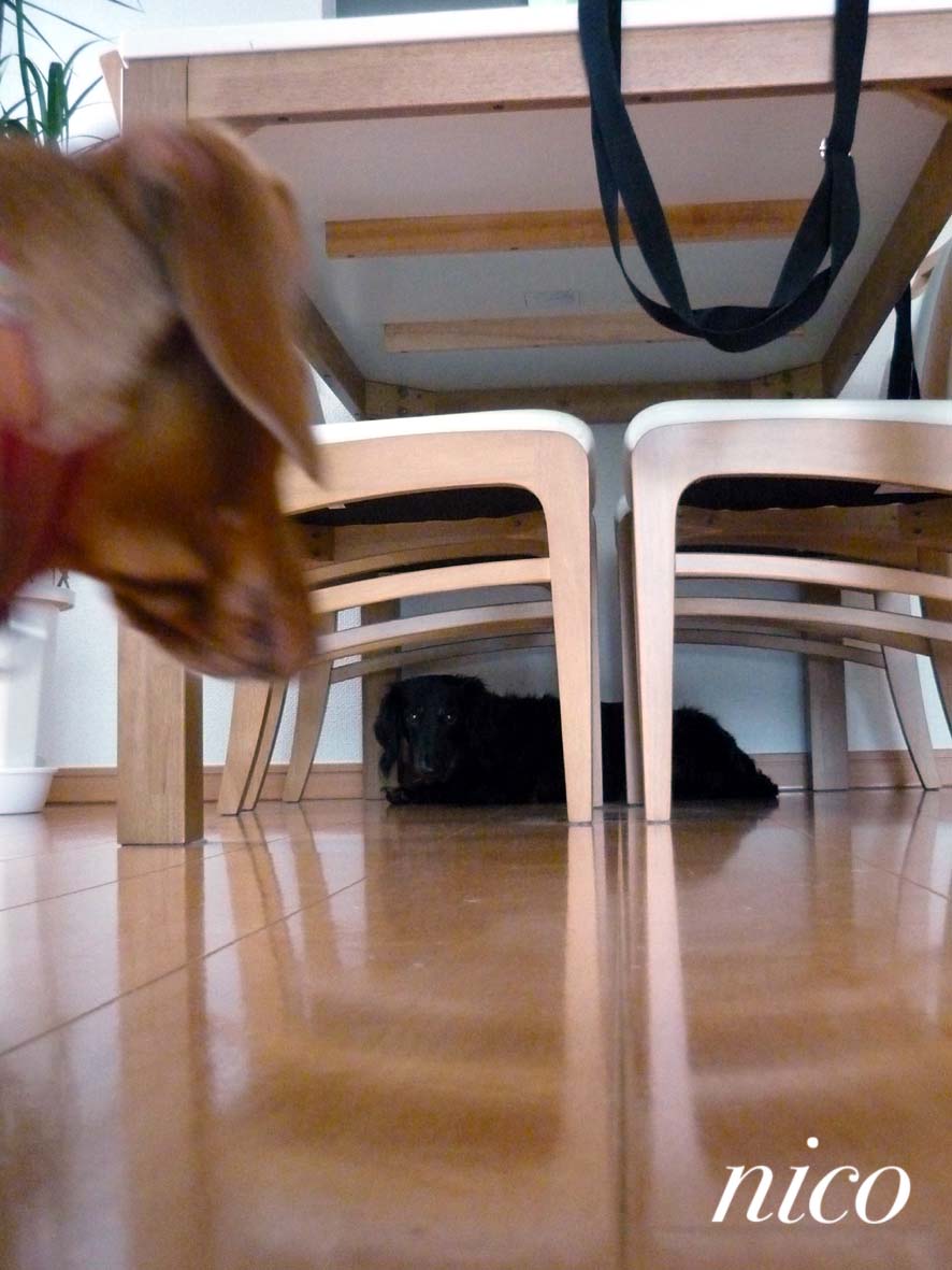(テーブルの下にエクはいます)